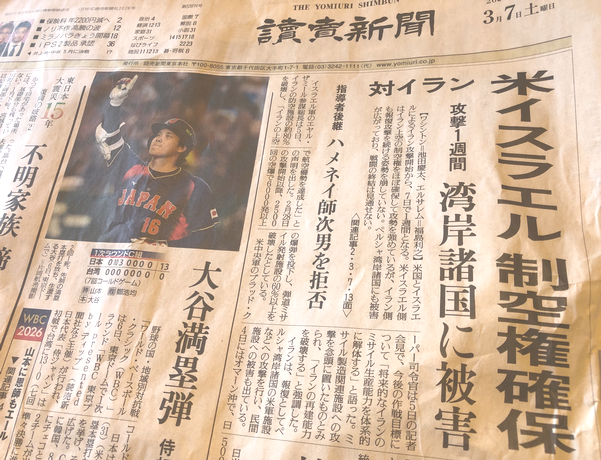 本日(3月7日)の読売新聞朝刊一面の見出しも。